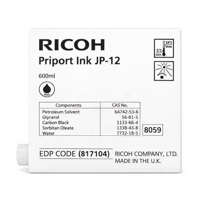 817104 / JP 12 Cartouche noire (pack de 5) de marque Ricoh pour votre duplicopieur Ricoh, 600 ml, garantie 1 an, livraison express.