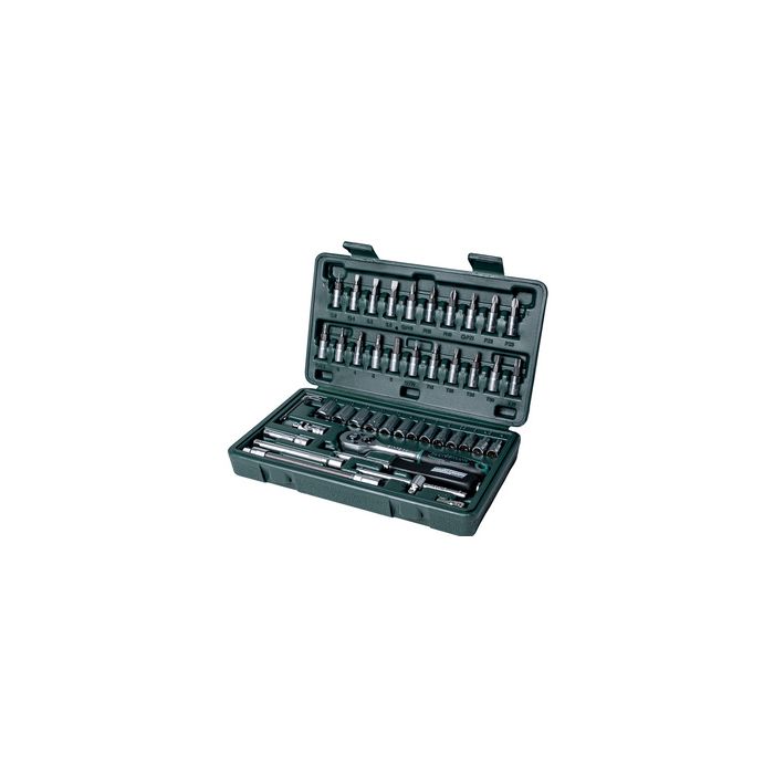 BRÜDER MANNESMANN Jeu de douilles 1/4", 46 pièces dans une malette en plastique, acier chrome vanadium, surface mate chromée, dimensions: 260 x 144 x 50 mm, couleurde la malette: vert, noir, couleur des outils: argent (M2040)