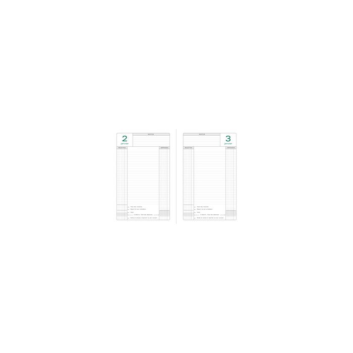 - Numéro de commande 8700013: recharge pour reliure de caisse • impression intérieur: recettes / dépenses • 1 jour par page • 2 perforations
