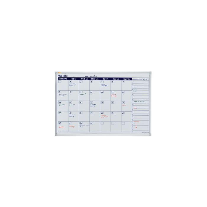 FRANKEN Tableau planning X-tra!Line semainier, 900 x 600 mm tableau magnétique et inscriptible, laqué, cadre en en aluminium avec coins en plastique, auget aperçu mois ou 7 jours, plannification du mois à venir, champ journalier 100x100mm, champ des projets 160x18mm (VO-7)