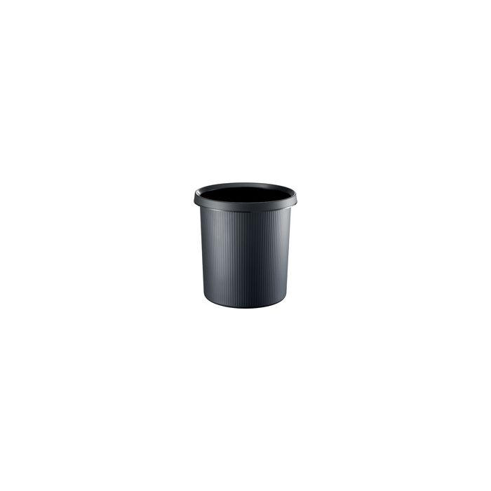 helit Corbeille à papier "the german line", 18 litres, noir PE, rond, avec bord de préhension circulaire, diamètre supérieur: 315 mm, hauteur: 320 mm, design strié, plastique (H6105795)