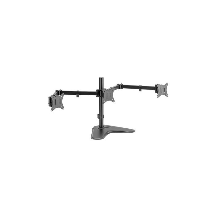 LogiLink Bras support pour 3 écrans, socle, noir longueur du bras: 658 mm, pour écrans de 43,18 cm - 68,58 cm(17"-27"), capacité de charge: 7 kg par écran, inclinaison: +/- 45 degrés, pivot: +/- 90 degrés, rotation: 180 degrés, hauteur du mât: 420 mm, en acier et plastique (BP0174) compatible VESA 75 x 75 et 100 x 100