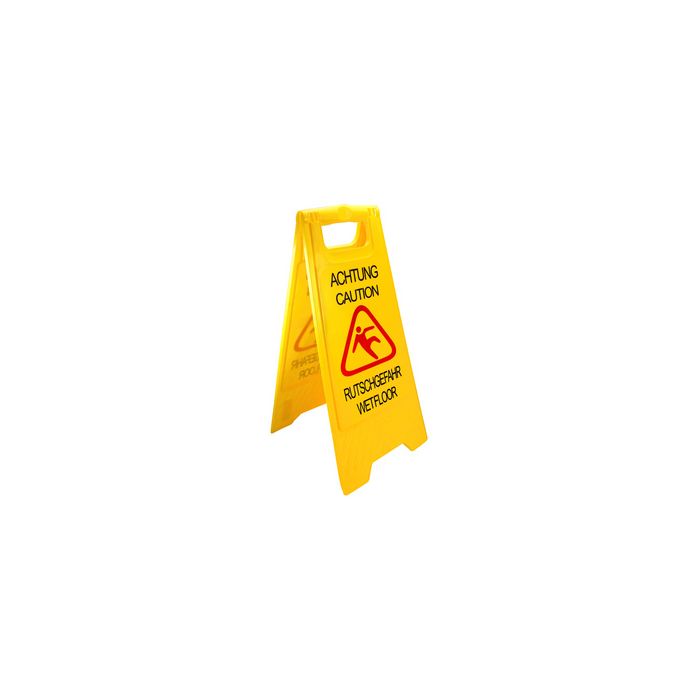 Peggy Perfect Panneau "Attention sol glissant", jaune en plastique, avec patte solide pour l'accrocher dimensions: (L)280 x (H)630 mm, texte anlais et allemand (97200)