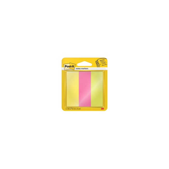 Post-it Marque-page Page Marker, papier, large, fluo 25 x 76 mm, uni, 100 feuilles/bloc, assorti dans les couleurs: jaune, pink et vert contenu: 3 x 100 feuilles (671-3 / 7100172769 / 25127)