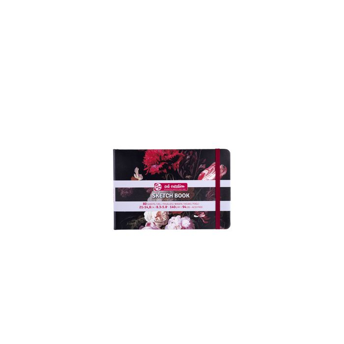 ROYAL TALENS Art Creation Carnet de croquis Nature morte 130 x 210 mm, 160 pages, 140 g/m2, papier sans acide, à grain fin, coins arrondis, couverture rigide avec motif imprimé, avec un élastique, avec ruban marque-page (9314252M)