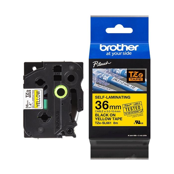 TZE-SL661 Ruban cassette noir, jaune de marque Brother pour votre étiqueteuse Brother, garantie 1 an, livraison express.